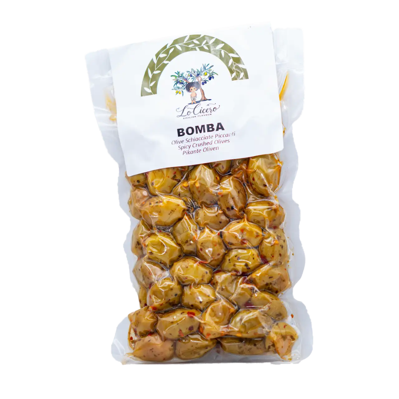 Ingredienti: Olive verdi 98%, peperoncino tritato, olio di semi di girasole, origano.