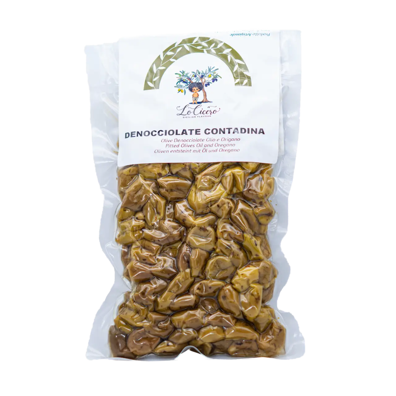 Ingredienti Olive denocciolate 98%. olio di semi di girasole, origano Può contenere noccioli di olive o frammenti di essi